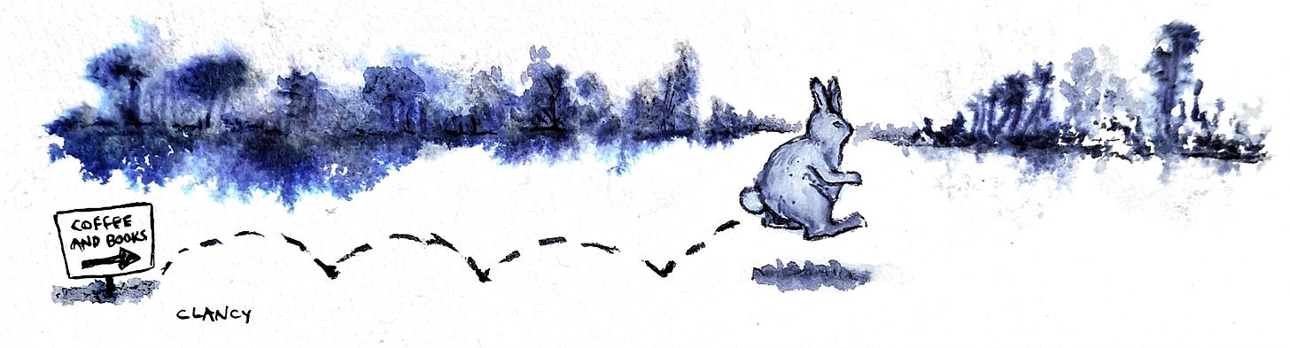 Since then I've been drawing rabbits and ordinary things (interspersed within this post) and thinking of the importance of common mundane things like language and food. I've been thinking of how mundane life itself is always going on without waiting for permission from us or any of the powers that be at the moment.2 Life just keeps continuing in the smallest of ways often in the face of dramatic circumstances. So I keep thinking that it’s the small things that matter.3 And while the small things do matter very much they don't have to be idealized things or be perfect or to be “optimized ”.4 We can, for example, mindfully get a decent set of silverware and have decently tasty meals and then just go on with our life. The quality of silverware can add a small niceness to one's meals just as a fun cup can add niceness to one's mornings. We sustain ourselves when we focus time and attention on the many incremental things within our ordinary lives that reflect what we value and enjoy.5