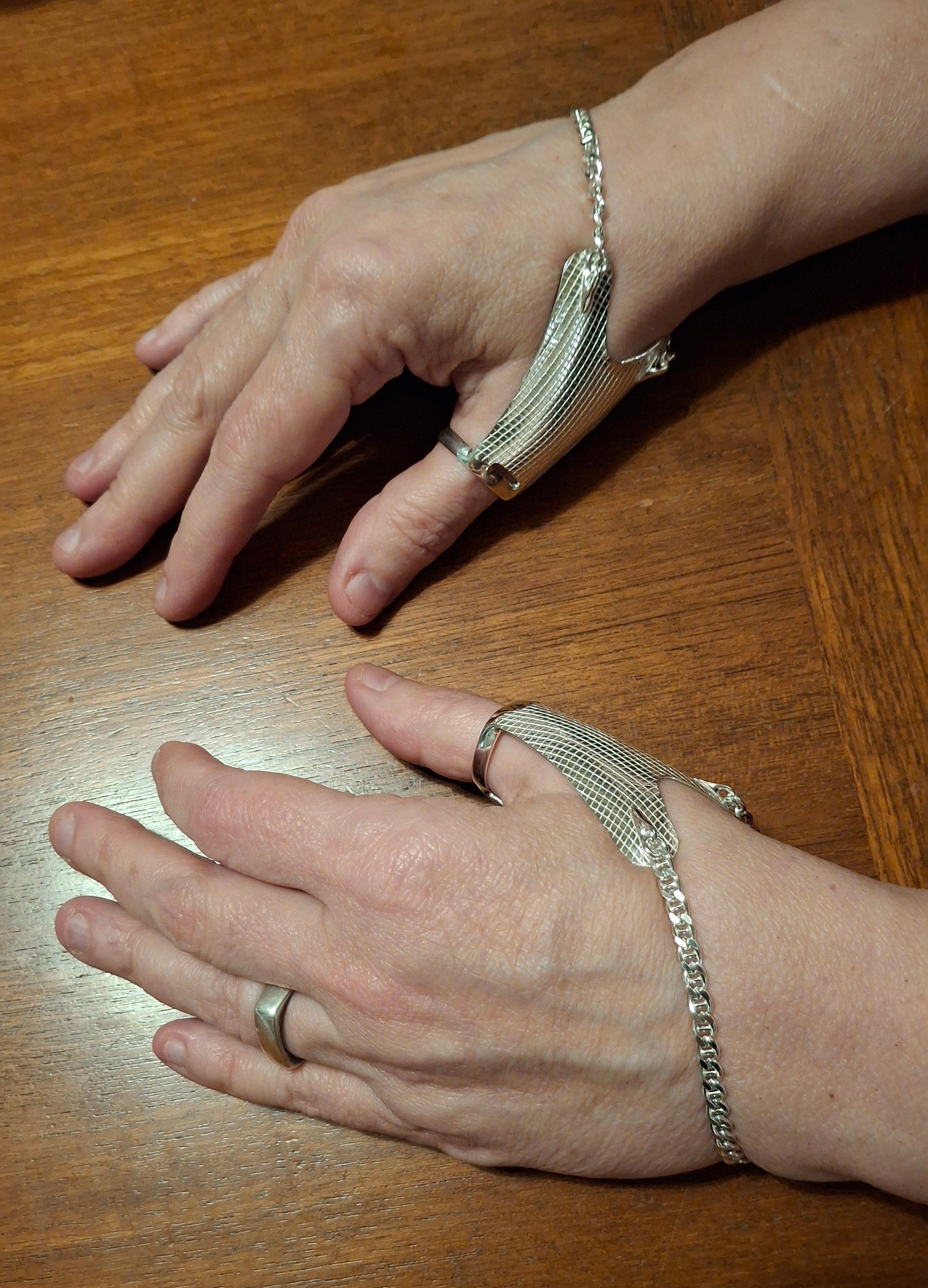 The thumb braces are beautiful--another example of beautiful artistry that is also pragmatic and functional.